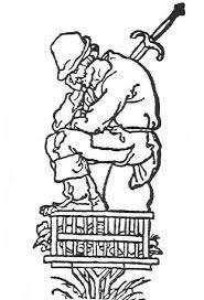 « Une épée bonne et bien aiguisée peut servir à la justice comme au meurtre. L’épée est-elle pour autant meilleure ou pire ? Il en va de même des arts » avait écrit Albrecht Dürer (Vom Nutzen des Wissens in Schriften und Briefe). L’épée peut-être glaive de justice emporté par un loup comme chez Beham ou coup lâche porté dans le dos d’un démuni chez Dürer. Examinons de plus prêt le sommet de la colonne :