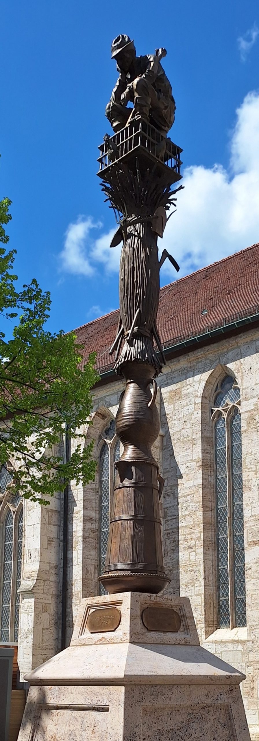 500 ans plus tard, le projet de Dürer a été réalisé à Mühlhausen, en bronze, par le sculpteur Timm Kregel. Il a été financé par des dons, une subvention de la ville et une contribution du loto. Il est situé devant la Kornmarktkirche, l’église du marché aux grains.