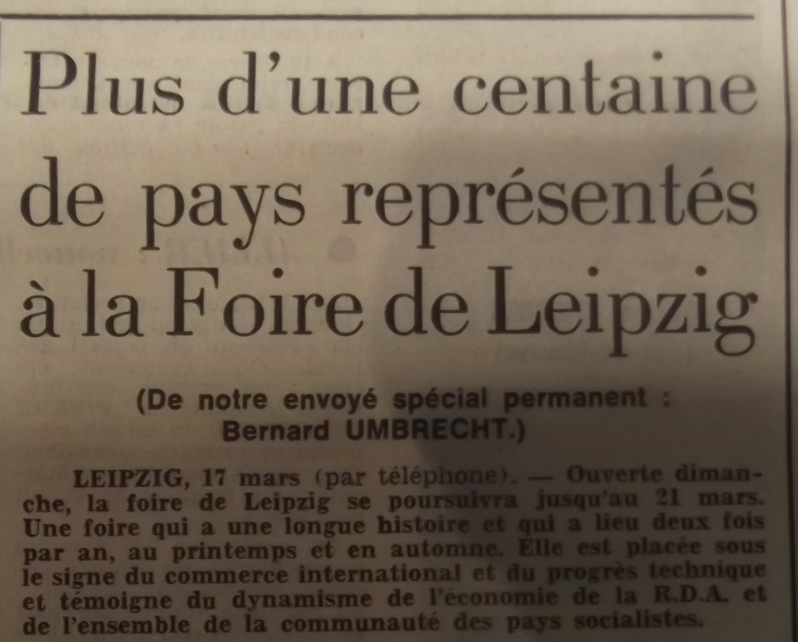 Il y avait là aussi Antoine Aquaviva, Robert Lambotte, François Lescure…, une belle brochette de héros de la Résistance, pas trop intimidants pour autant face au jeunot que j’étais. De plus jeunes aussi comme Claude Kroes. Je me dois de citer encore Michel Cardoze aux pages culturelles, avec qui j’aurais à travailler. Et Claude Prévost qui livrait des chroniques littéraires au quotidien avec qui j’entretiendrai une correspondance épistolaire. Germaniste, il connaissait bien la RDA et la littérature allemande. Il y avait encore toute une série de correspondants à l’étranger, Moscou bien évidemment mais aussi Pologne, Cuba, Vietnam, Rome, Bruxelles, j’en oublie. Il me reviendra d’être à cheval sur les deux Allemagnes.